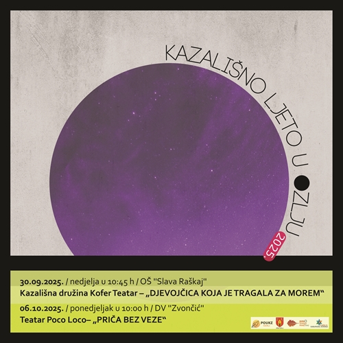 Nakon Kazališnog ljeta u Ozlju koje je završilo u srpnju, odlučili smo napraviti jesenski dodatak projektu koji je namijenjen djeci. Dvije predstave biti će organizirane u sklopu Dječjeg tjedna.